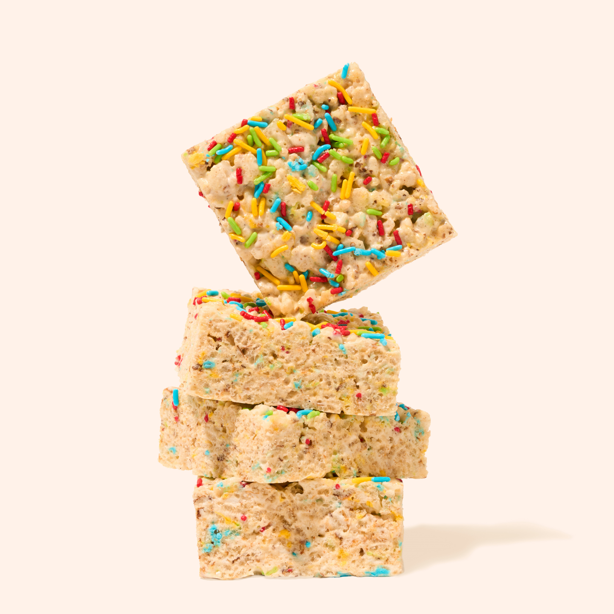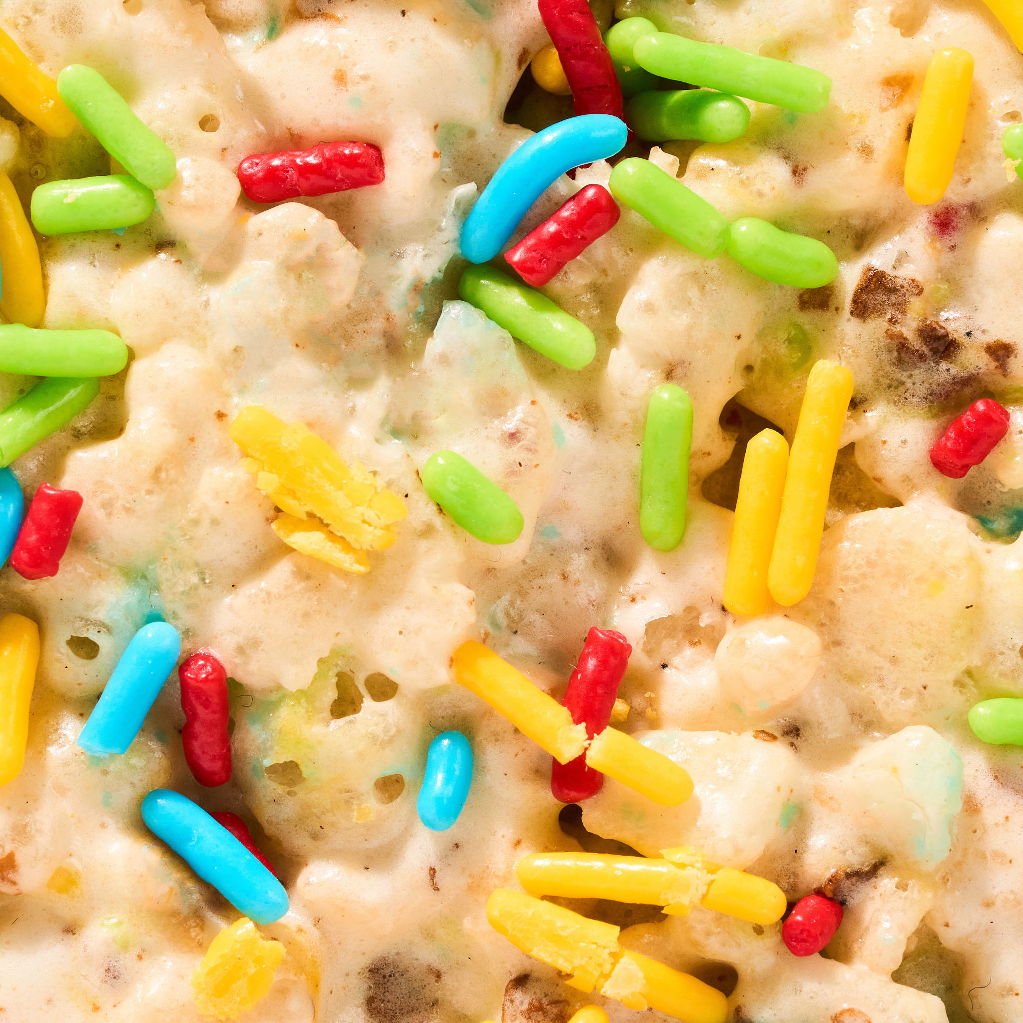 This is a celebration RKT if we've ever seen one. Our classic brown butter toasted marshmallow rice cereal treat gets a celebratory upgrade with loads of sprinkles, vanilla bean paste, and vanilla extract.